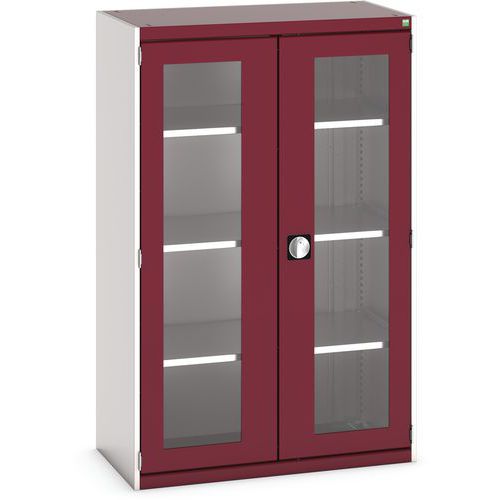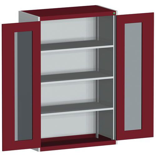 Dielenská skriňa s priehľadnými dverami Bott Cubio, 160 x 105 x 52,5 cm, 3 police, šedá-červená