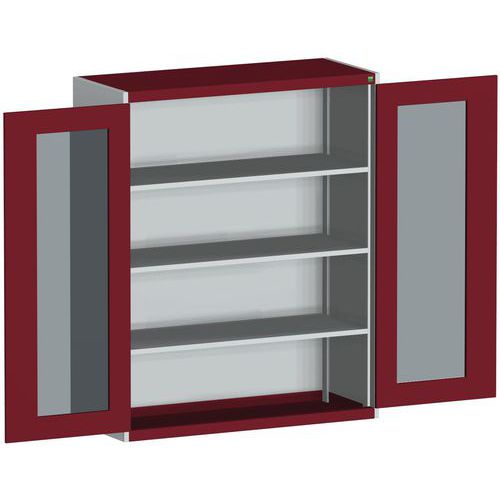 Dielenská skriňa s priehľadnými dverami Bott Cubio, 160 x 130 x 52,5 cm, 3 police, šedá-červená