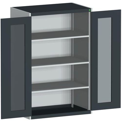 Dielenská skriňa s priehľadnými dverami Bott Cubio, 160 x 105 x 65 cm, 3 police, šedá-antracit