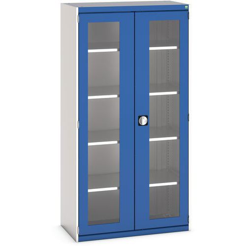 Dielenská skriňa s priehľadnými dverami Bott Cubio, 200 x 105 x 52,5 cm, 4 police, šedá-modrá