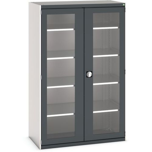 Dielenská skriňa s priehľadnými dverami Bott Cubio, 200 x 130 x 65 cm, 4 police, šedá-antracit