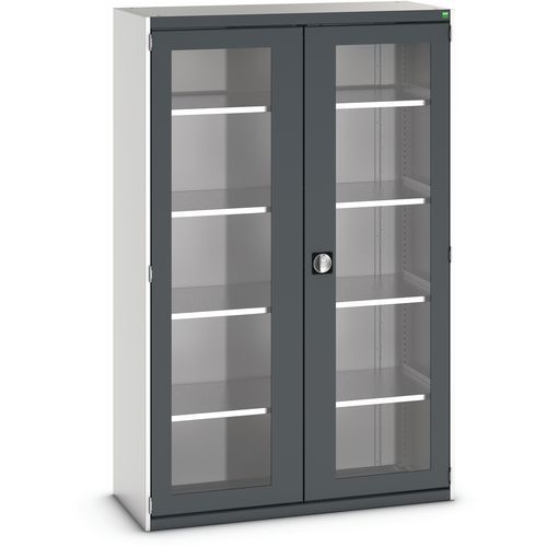Dielenská skriňa s priehľadnými dverami Bott Cubio, 200 x 130 x 52,5 cm, 4 police, šedá-antracit