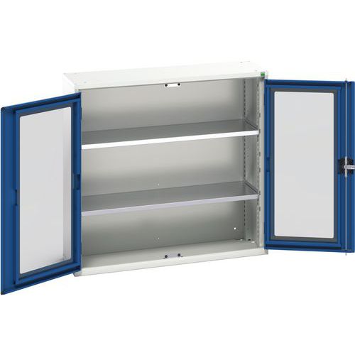 Dielenská skriňa s priehľadnými dverami Bott Verso, 100 x 105 x 35 cm, 2 police, šedá-modrá