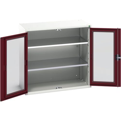 Dielenská skriňa s priehľadnými dverami Bott Verso, 100 x 105 x 55 cm, 2 police, šedá-červená