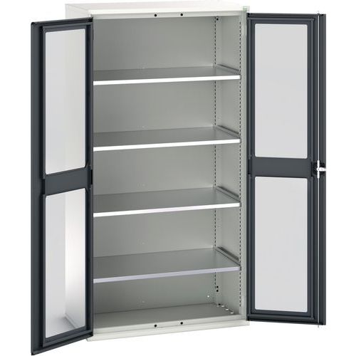 Dielenská skriňa s priehľadnými dverami Bott Verso, 200 x 105 x 55 cm, 4 police, šedá-antracit