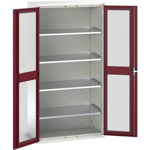 Dielenská skriňa s priehľadnými dverami Bott Verso, 200 x 105 x 55 cm, 4 police, šedá-červená