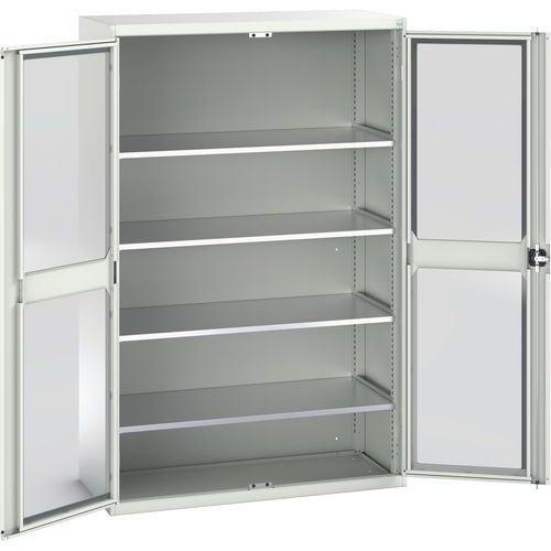 Dielenská skriňa s priehľadnými dverami Bott Verso, 200 x 130 x 55 cm, 4 police, šedá-šedá