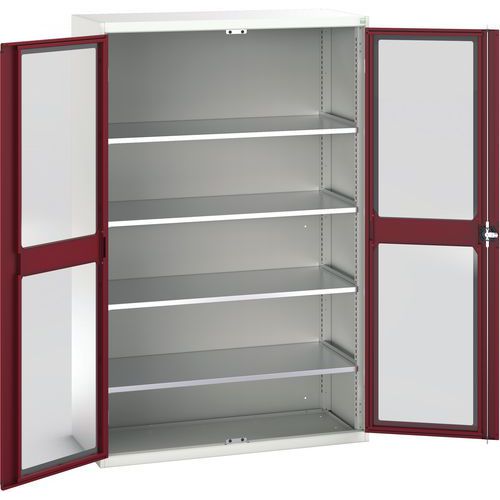 Dielenská skriňa s priehľadnými dverami Bott Verso, 200 x 130 x 55 cm, 4 police, šedá-červená