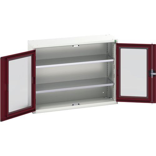 Dielenská skriňa s priehľadnými dverami Bott Verso, 80 x 105 x 35 cm, 2 police, šedá-červená