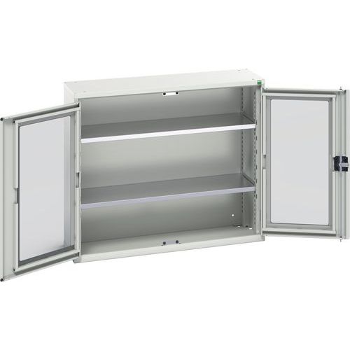 Dielenská skriňa s priehľadnými dverami Bott Verso, 90 x 105 x 35 cm, 2 police, šedá-šedá