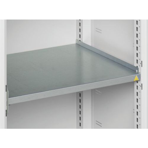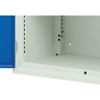 Kovové dielenské skrine s priehľadnými plexi dverami pre ľahkú kontrolu obsahu. Pozinkované police s nosnosťou 75 kg, výškovo nastaviteľné v rastri 25 mm. Zváraná oceľová konštrukcia, povrchová úprava práškovým lakom. Uzamykanie trojbodovým cylindrickým rázvorovým zámkom s dvoma kľúčmi.