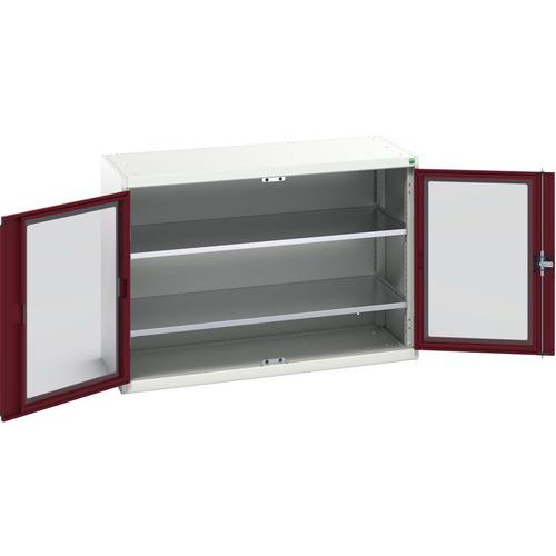 Dielenská skriňa s priehľadnými dverami Bott Verso, 90 x 130 x 55 cm, 2 police, šedá-červená