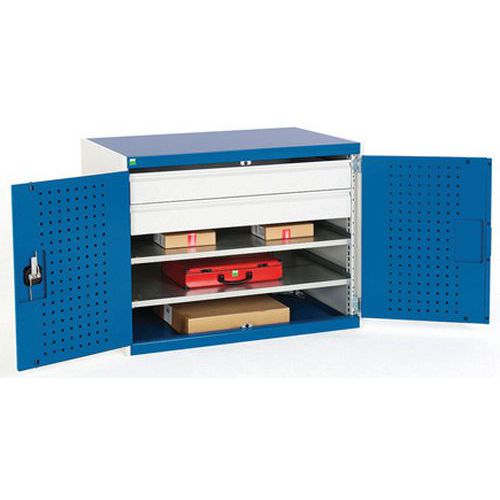 Dielenská skriňa so zásuvkami Bott Cubio 160, 100 x 130 x 65 cm, 2 police, 2 zásuvky, šedá-modrá