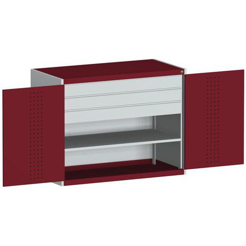 Dielenská skriňa so zásuvkami Bott Cubio 160, 100 x 130 x 65 cm, 1 polica, 3 zásuvky, šedá-červená