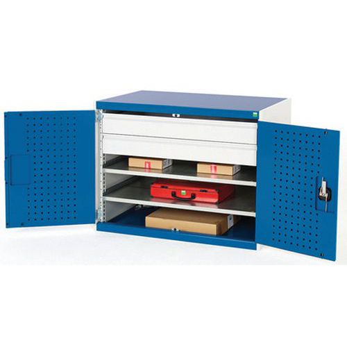 Dielenská skriňa so zásuvkami Bott Cubio, 100 x 105 x 65 cm, 2 police, 2 zásuvky, šedá-modrá