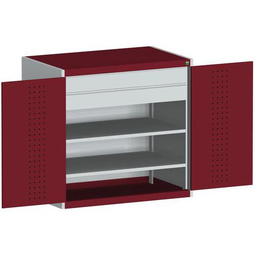 Dielenská skriňa so zásuvkami Bott Cubio, 100 x 105 x 65 cm, 2 police, 2 zásuvky, šedá-červená