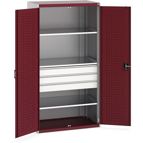 Dielenská skriňa so zásuvkami Bott Cubio, 200 x 105 x 65 cm, 3 police, 3 zásuvky, šedá-červená