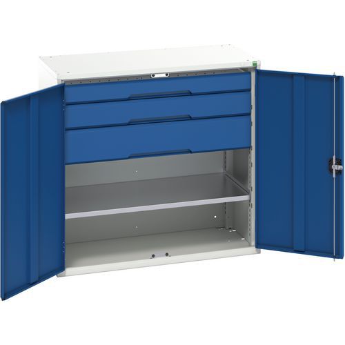 Dielenská skriňa so zásuvkami Bott Verso, 100 x 105 x 55 cm, 1 polica, 3 zásuvky, šedá-modrá