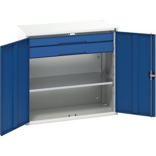 Dielenská skriňa so zásuvkami Bott Verso, 100 x 105 x 55 cm, 1 polica, 2 zásuvky, šedá-modrá