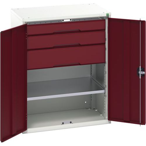 Dielenská skriňa so zásuvkami Bott Verso, 100 x 80 x 55 cm, 1 polica, 3 zásuvky, šedá-červená