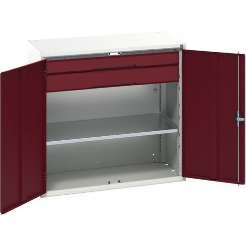 Dielenská skriňa so zásuvkami Bott Verso, 100 x 105 x 55 cm, 1 polica, 2 zásuvky, šedá-červená