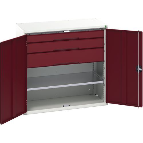 Dielenská skriňa so zásuvkami Bott Verso, 100 x 105 x 55 cm, 1 polica, 3 zásuvky, šedá-červená