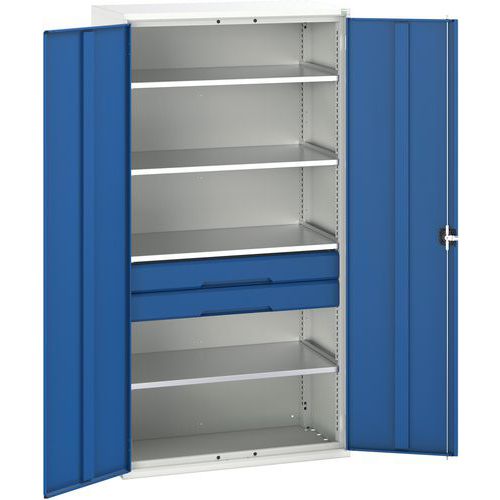 Dielenská skriňa so zásuvkami Bott Verso, 200 x 105 x 55 cm, 4 police, 2 zásuvky, šedá-modrá