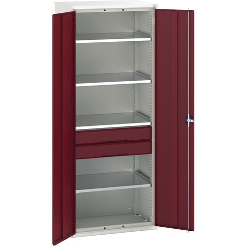 Dielenská skriňa so zásuvkami Bott Verso, 200 x 80 x 55 cm, 4 police, 2 zásuvky, šedá-červená