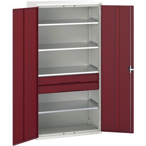 Dielenská skriňa so zásuvkami Bott Verso, 200 x 105 x 55 cm, 4 police, 2 zásuvky, šedá-červená