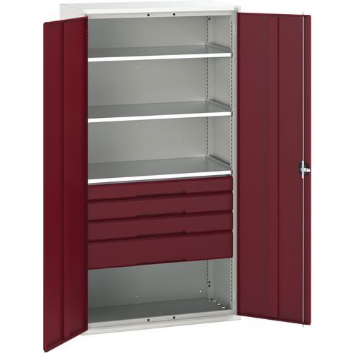 Dielenská skriňa so zásuvkami Bott Verso, 200 x 105 x 55 cm, 3 police, 4 zásuvky, šedá-červená