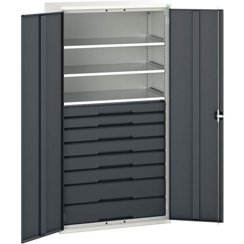 Dielenská skriňa so zásuvkami Bott Verso, 200 x 105 x 55 cm, 3 police, 8 zásuviek, šedá-antracit
