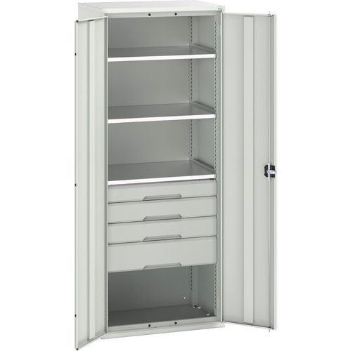 Dielenská skriňa so zásuvkami Bott Verso, 200 x 80 x 55 cm, 3 police, 4 zásuvky, šedá-šedá