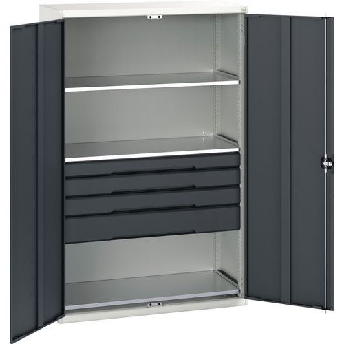 Dielenská skriňa so zásuvkami Bott Verso, 200 x 130 x 55 cm, 3 police, 4 zásuvky, šedá-antracit