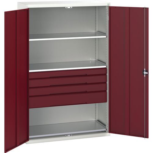 Dielenská skriňa so zásuvkami Bott Verso, 200 x 130 x 55 cm, 3 police, 4 zásuvky, šedá-červená