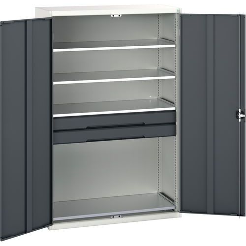 Dielenská skriňa so zásuvkami Bott Verso, 200 x 130 x 55 cm, 4 police, 2 zásuvky, šedá-antracit