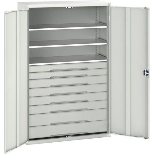 Dielenská skriňa so zásuvkami Bott Verso, 200 x 130 x 55 cm, 3 police, 8 zásuvky, šedá-šedá