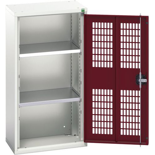 Dielenská skriňa policová Bott Verso, drôtené dvere, 100 x 52,5 x 35 cm, 2 police, šedá-červená