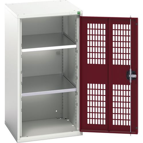 Dielenská skriňa policová Bott Verso, drôtené dvere, 100 x 52,5 x 55 cm, 2 police, šedá-červená