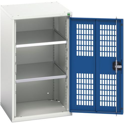 Dielenská skriňa policová Bott Verso, drôtené dvere, 90 x 52,5 x 55 cm, 2 police, šedá-modrá