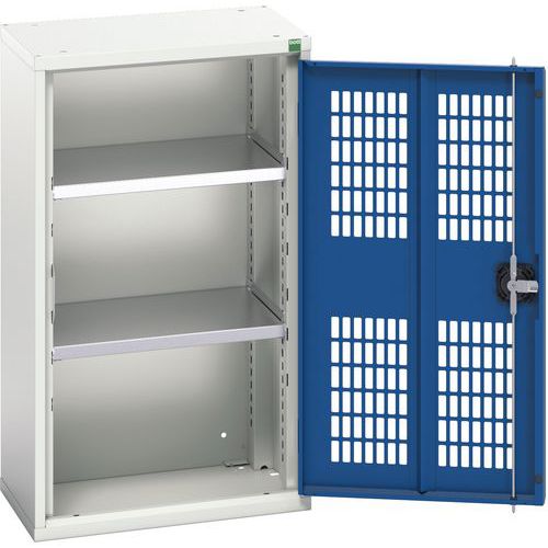 Dielenská skriňa policová Bott Verso, drôtené dvere, 90 x 52,5 x 35 cm, 2 police, šedá-modrá