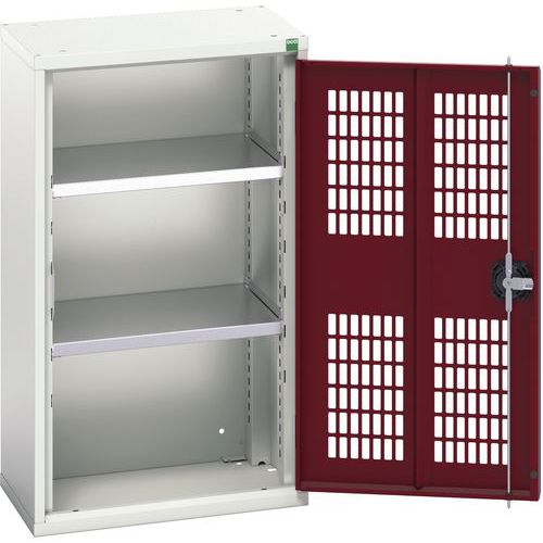 Dielenská skriňa policová Bott Verso, drôtené dvere, 90 x 52,5 x 35 cm, 2 police, šedá-červená