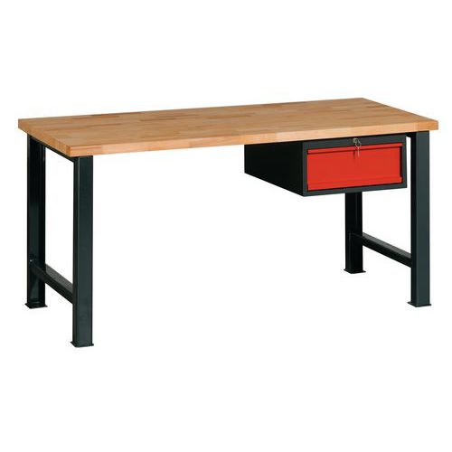 Stôl je stabilný a vyhovuje aj náročnejším pracovným úlohám vďaka robustnému vyhotoveniu podnožia a vyššej hmotnosti bukovej škárovky.