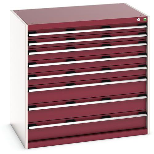 Dielenská zásuvková skriňa Bott Cubio, 100 x 105 x 75 cm, 8 zásuviek, šedá-červená
