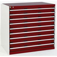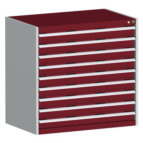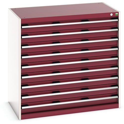 Dielenská zásuvková skriňa Bott Cubio, 100 x 105 x 65 cm, 9 zásuviek, šedá-červená
