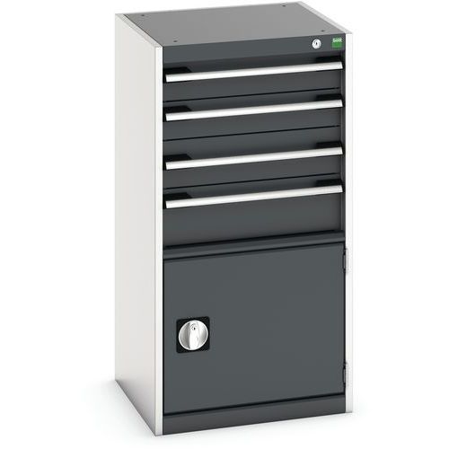 Dielenská zásuvková skriňa Bott Cubio, 100 x 52,5 x 52,5 cm, 4 zásuvky, 1 skrinka, šedá-antracit Dielenská zásuvková skriňa Bott Cubio, 100 x 52,5 x 52,5 cm, 4 zásuvky, 1 skrinka, šedá-antracit