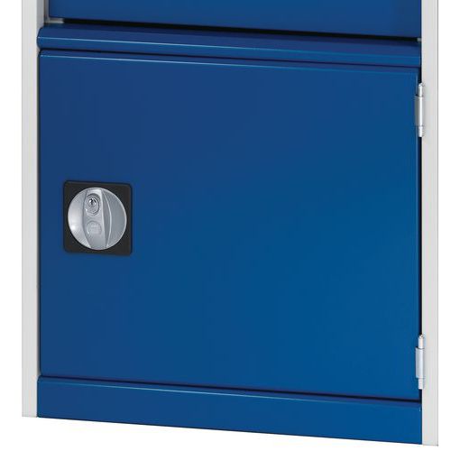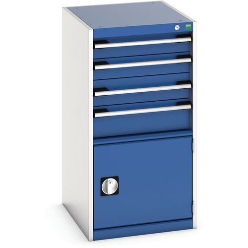 Dielenská zásuvková skriňa Bott Cubio, 100 x 52,5 x 65 cm, 4 zásuvky, 1 skrinka, šedá-modrá Dielenská zásuvková skriňa Bott Cubio, 100 x 52,5 x 65 cm, 4 zásuvky, 1 skrinka, šedá-modrá