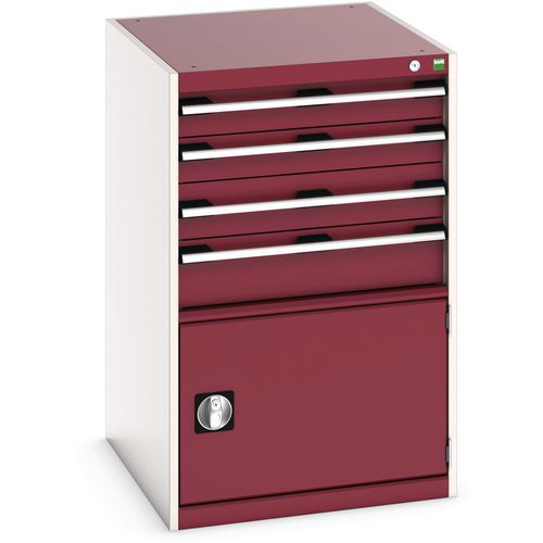 Dielenská zásuvková skriňa Bott Cubio, 100 x 65 x 75 cm, 4 zásuvky, 1 skrinka, šedá-červená Dielenská zásuvková skriňa Bott Cubio, 100 x 65 x 75 cm, 4 zásuvky, 1 skrinka, šedá-červená
