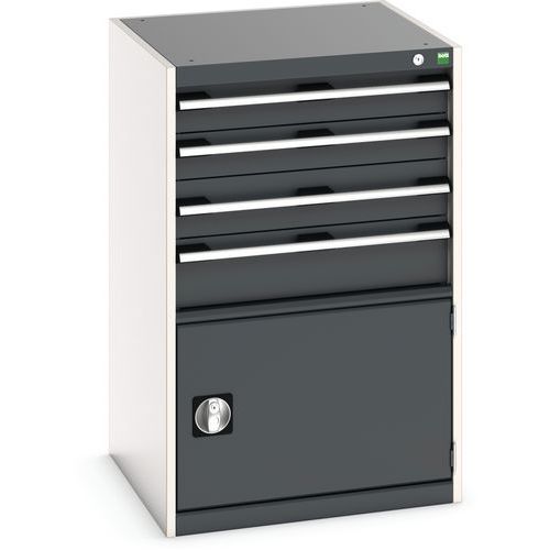 Dielenská zásuvková skriňa Bott Cubio, 100 x 65 x 65 cm, 4 zásuvky, 1 skrinka, šedá-antracit Dielenská zásuvková skriňa Bott Cubio, 100 x 65 x 65 cm, 4 zásuvky, 1 skrinka, šedá-antracit
