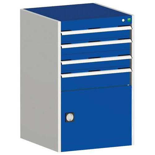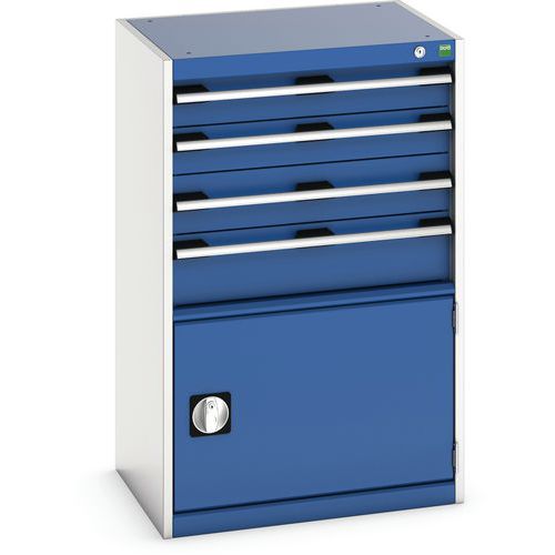 Dielenská zásuvková skriňa Bott Cubio, 100 x 65 x 52,5 cm, 4 zásuvky, 1 skrinka, šedá-modrá Dielenská zásuvková skriňa Bott Cubio, 100 x 65 x 52,5 cm, 4 zásuvky, 1 skrinka, šedá-modrá