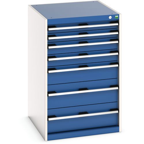 Dielenská zásuvková skriňa Bott Cubio, 100 x 65 x 75 cm, 7 zásuviek, šedá-modrá